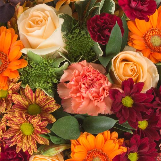 Please note that due to the seasonal availability of flowers it may be necessary to vary individual stems from those shown. Our skilled florists may substitute flowers for one similar in style, quality and value. Where our designs include a sundry item like a vase or basket it may not always be possible to include the exact item as displayed. If such an occasion arises we will make every effort to replace the item with a suitable alternative.
